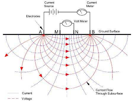 Electrical Resistivity is the geophysical method used to measure the apparent resistivity of the subsurface material, which eventually measures and detect the effects of variation of ground water, soil type, bedrock fractures and contaminants. Variations in electrical resistivity may indicate changes in ground water potential, composition, layer thickness or contaminant levels.