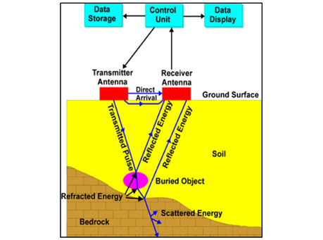 This method consists of the use of a specialized set of borehole antennae in adjacent boreholes, one transmitter and one receiver. This technique can be employed to obtain a 2-D section showing the changes in the electromagnetic propagation speed between two boreholes using the same software as for seismic tomography. The technique is very efficient and has an exceptional resolution.